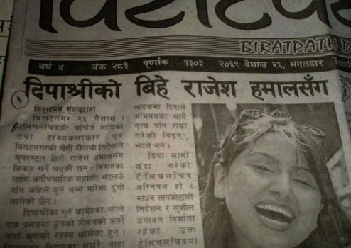 दिपाश्री निरौलाको गुरु भनिएका कामेश्वर झाले बोलेको भनिएको प्रसंगलाई विराटनगरको स्थानीय पत्रिका बिराटपठले हेडलाइन न्युज बनाई छापेको थियो । त्यसपछि बिराटनगरको दैनिक पत्रिकाबाट सुरु भएको यो हल्लाहको बारेमा आफु समाचार सुनेर अचम्म ¥मा परेको बताएकी छिन् । आफुले पनि राजेश दाई संग आफ्नो बिबाह हुने भनेर पत्रिकाले छापेको सुनेको र पत्रिका खोज्दा फेला नपरेको र मोफसलको मिडियाले आफुलाई कुनै जानकारी नदिई समाचार सम्प्रेषण गरेको बताएकी छिन् ।