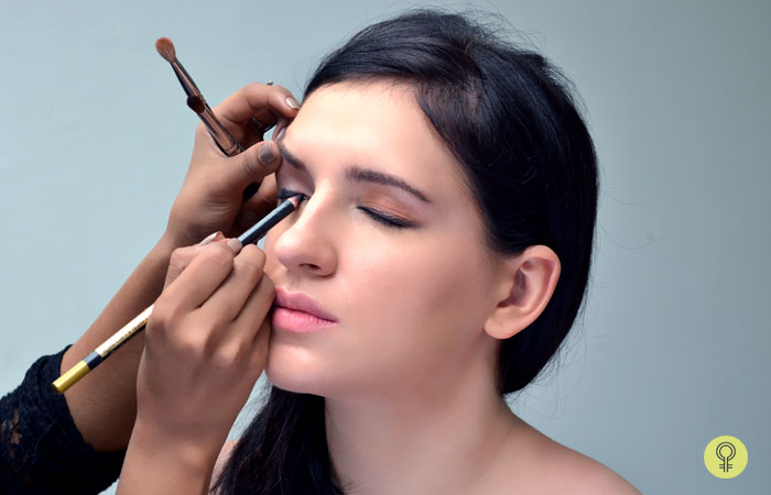 आँखा मेकअपको सबैभन्दा महत्वपूर्ण चरण मानिन्छ। आईसेडो, आई लाइनर र गाजल लगाउँदा आँखाको सुन्दरता बढ्छ। आजकल सजिलैसँग बजार वा अनलाइनमा न्युड रंगको शेडहरू पाउन सक्नुहुन्छ। उही समयमा, आई लाइनर अलि पातलो लगाउनुहोस्। यसले तपाईंको आँखा धेरै आकर्षक देखिन्छ। यस पछि पातलो काजल आँखामा पनि लगाउनुहोस्। मस्करा प्रयोग नगर्नुहोस्, यो लाईटको सट्टामा भारी देखिन्छ।
