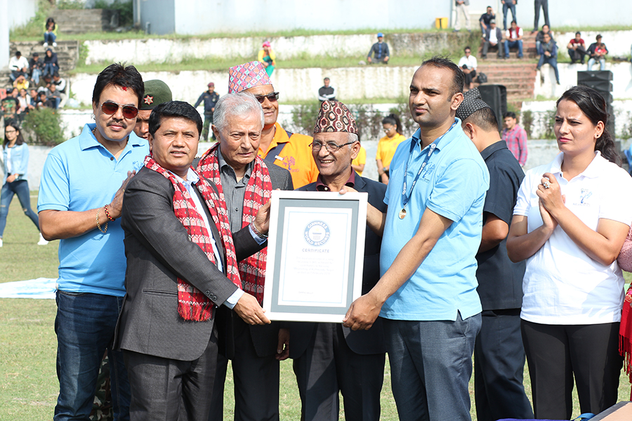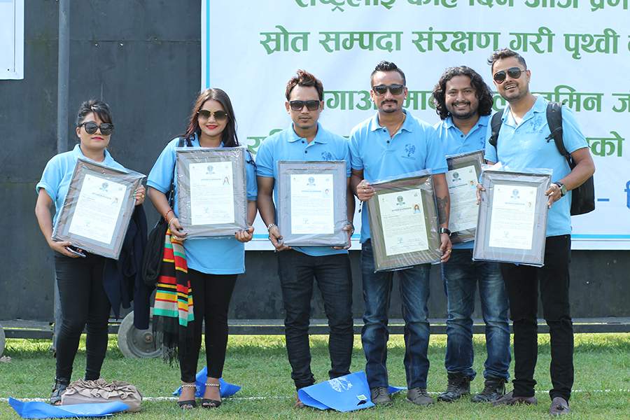 उक्त गीतले गिनीज बुकको प्रमाणपत्र बितरण कार्य किर्तिपुरस्थित क्रिकेट मैदानमा आयोजना भएको थियो । दिगो वातावरण तथा प्रारिस्थितिकिय प्रणाली व्यवस्था नेपालद्वारा आयोजित उक्त कार्यक्रममा सहभागी भएर विश्व किर्तिमान राख्न सफलहरुलाई पर्यटनमन्त्री रविन्द्र अधिकारीले प्रमाणपत्र हस्तान्तरण गरेका थिए।