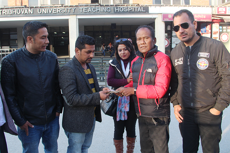 दुवै मृगौलाले काम नगरेपछि राजधानीको महाराजगञ्जस्थित त्रिभुवन विश्वविद्यालय शिक्षण अस्पतालमा डाईलासियस गरेर दैनिकी बिताइरहेका नेपाली लोकगितका चर्चित गायक तथा संगीत संयोजक पूर्ण गुरुङलाई आर्टिस्ट नेपालको संयोजकमा नेपाली अमेरिकन कलाकार संघ र रिबेल ईभेन्टले १ लाख नगद सहयोग गरेको छ । गायक गुरुङलाई कलाकार संघको तर्फबाट नायक बिक्रान्त बस्नेत र रेबेल ईभेन्टको तर्फबाट गायक राजेश हमालको उपस्थितीमा आर्टिस्ट नेपालका नब ढुंगेलले हस्पिटल प्राङगणमा उक्त रकम हस्तान्तरण गर्नुभएको हो ।