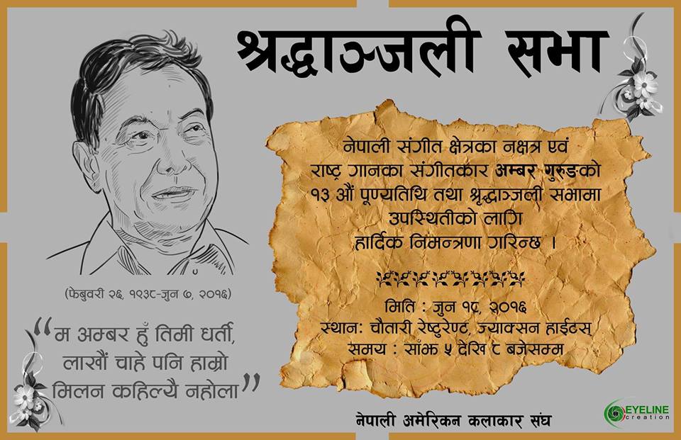 KATHMANDU: Legendary musician Amber Gurung who passed away on June 7 was remembered in New York, USA on June 18. In an event organized by American Nepali Kalakar Sangh, people gathered to offer their condolences to the late musician.