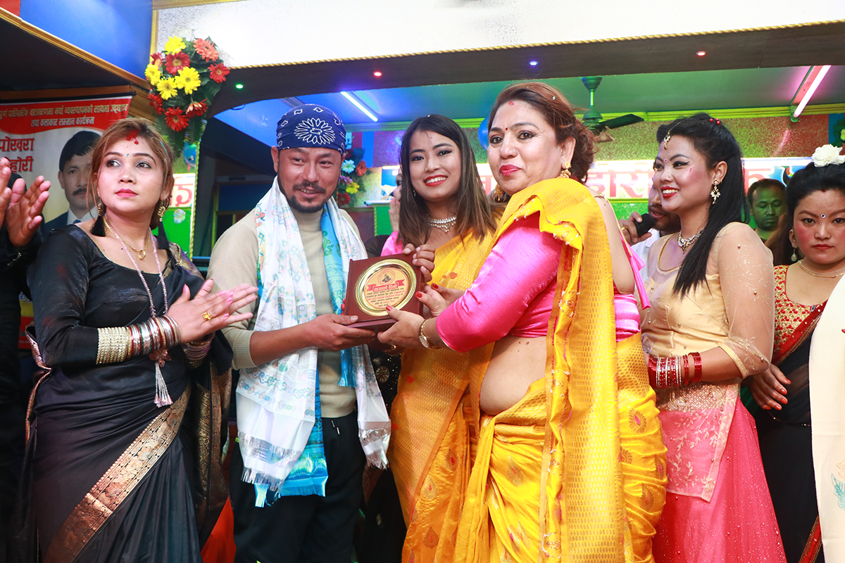 गत लामो समयदेखी लोक गीत संगीत क्षेत्रमा रही नेपाली लोकगितलाई राष्ट्रिय तथा अन्तरराष्ट्रिय क्षेत्रमा पुर्याउन सफल चर्चित गायक तथा चलचित्र निर्देशक नारायण रायमाझी, गायिका बिमाकुमारी दुरा, गायक राजु परिवार,रेशम थापा, खुमन अधिकारी, गायिका मंजु पौडेल, संचारकर्मी अनुसा पौडेल, गायक संचारकर्मी कृष्ण कंडेल, नृत्य निर्देशक उदिराम खड्का,शिव हमाल, बाबुराम बोहरा लगायतलाई लोक संगीत बिकासमा पुर्याउनु भएको योगदानको कदर गर्दै सम्मान गरिएको आयोजकले बताए ।